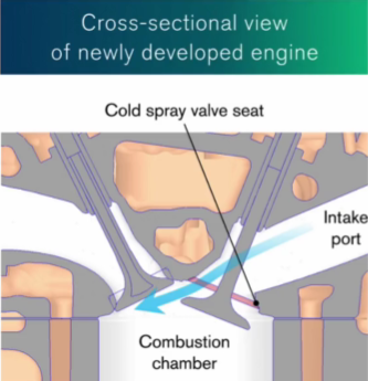 Sin embargo, un novedoso asiento de válvula que utiliza tecnología de pulverización en frío permite aplicar un recubrimiento directamente sobre la superficie de la culata mediante una aleación a base de cobre, lo que elimina la necesidad de un componente de asiento de válvula independiente y permite la creación de una geometría optimizada del puerto de admisión.