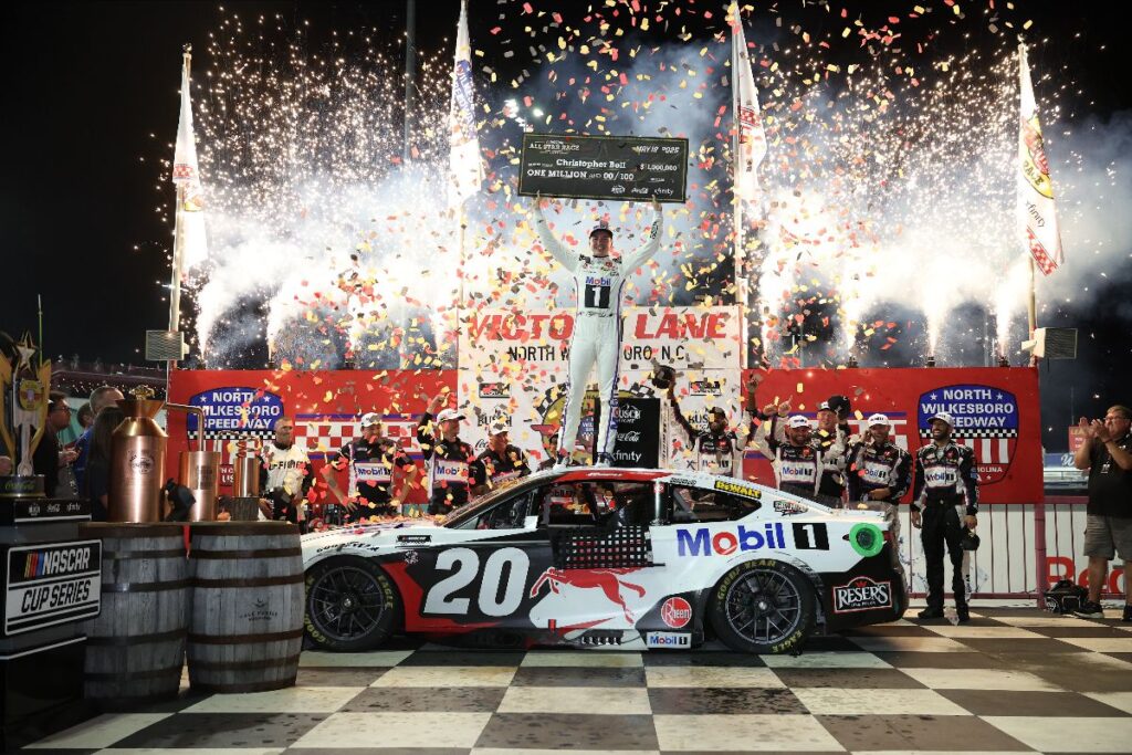 En el icónico óvalo corto de North Wilkesboro, Christopher Bell logró su primera victoria en la NASCAR All-Star Race tras vencer en un emocionante duelo final a Joey Logano. Con fuegos artificiales iluminando el cielo y humo saliendo de sus neumáticos, Bell celebró al cruzar la meta en primer lugar al volante de su Toyota No. 20 de Joe Gibbs Racing. Este triunfo fue el primero para un piloto de Toyota en este evento desde 2017.