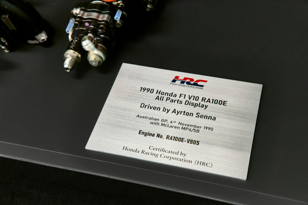 Por lo general, los motores Honda F1 de esta época se devolvían a Japón para su análisis, se desmontaban para comprobar su desgaste, y a menudo se desechaban. Sin embargo, dado que 1990 fue el último año del motor V10 y ya se había iniciado el desarrollo del motor V12 para el año siguiente, el V805 se conservó en su estado original sin desmontarlo. Esto lo convierte en el último motor Honda F1 V10 utilizado realmente por Ayrton Senna en una carrera, una pieza histórica de gran valor.