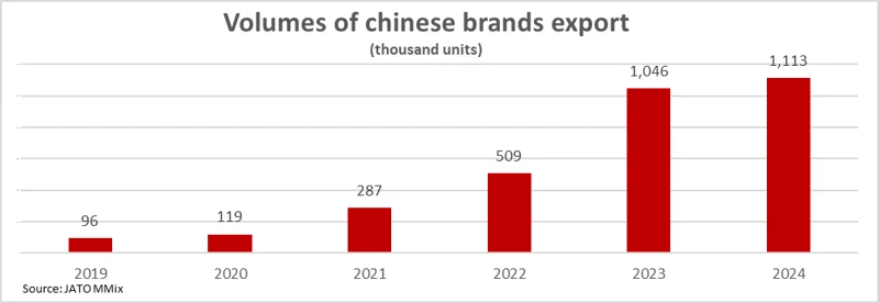Si bien las marcas chinas han seguido expandiendo su presencia en el mercado nacional, también han experimentado un crecimiento exponencial de las exportaciones entre 2019 y 2024. Este auge se ha visto impulsado por el rápido aumento de la capacidad de producción, que no solo sustenta grandes volúmenes en el mercado nacional, sino que también permite un cambio estratégico hacia oportunidades internacionales.